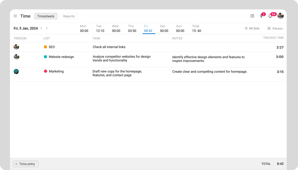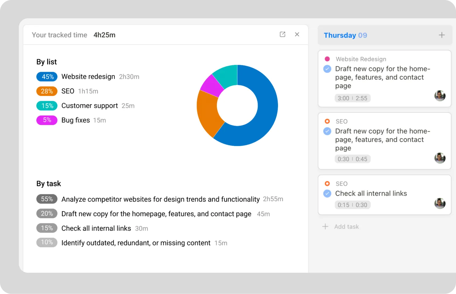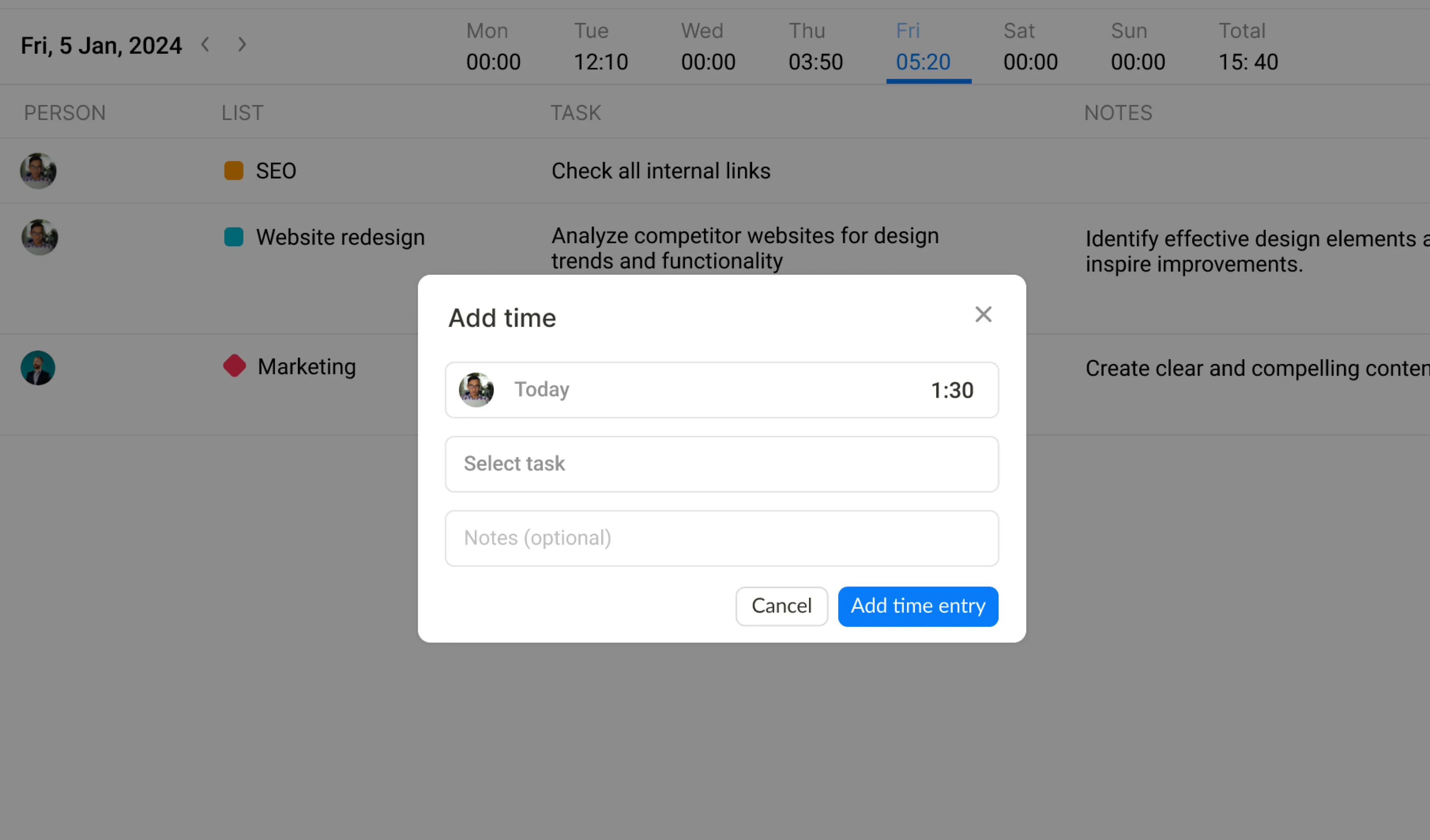 Simplify time tracking with Upbase’s intuitive feature that lets you monitor hours, tasks, and productivity in real time. Stay organized and gain insights to improve efficiency.